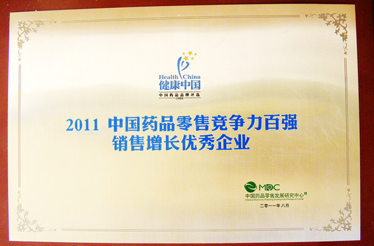 2011年中國藥品零售競爭力百強銷售增長優秀企業