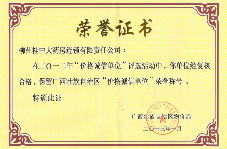 2013年區級“價格誠信單位”