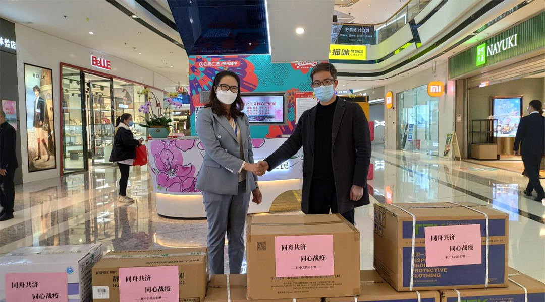 3月29日下午15時,桂中大藥房攜手健合集團在柳州城中萬達舉行防疫物資捐贈活動。隨后,副總經理陳曉遠先生、劉淑琴女士、健合集團代表與城中萬達相關領導積極交流防疫工作經驗,城中萬達相關領導對本次捐贈活動表示感謝。