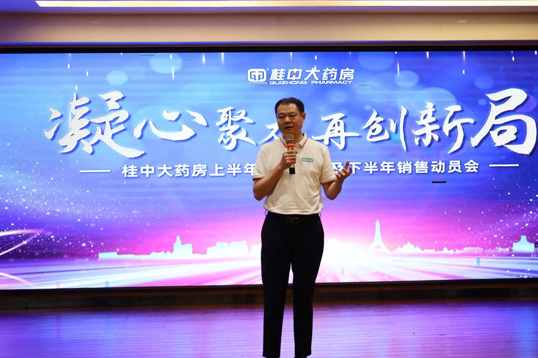 7月11日,2022年桂中大藥房半年經營分析會及下半年銷售動員會成功舉辦。本次會議總經理肖俊雄先生勉勵全體同仁,希望在新的行業形勢下,大家能夠“凝心聚力·再創新局”!