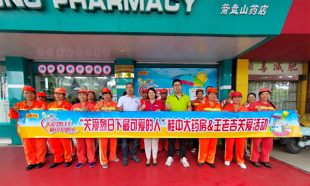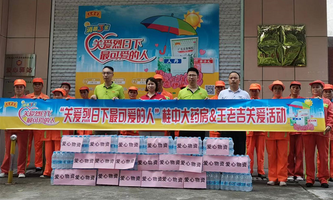 2022年8月12日,桂中大藥房攜手王老吉藥業代表前往柳州魚峰區開展“關愛烈日下最可愛的人”公益活動。