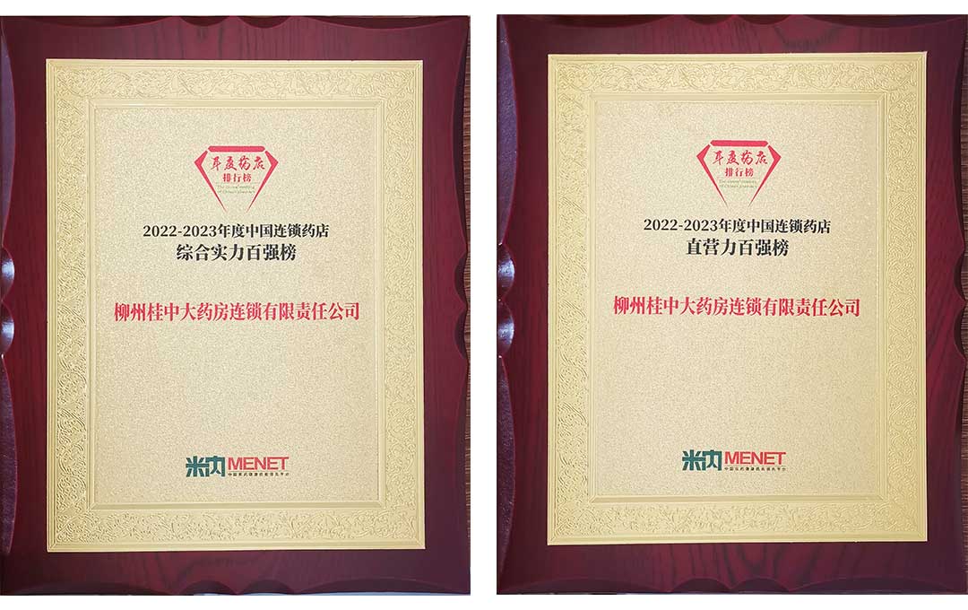 憑借多年來在醫藥零售領域的深耕與持續創新,桂中大藥房榮登“2022-2023年度中國連鎖藥店綜合實力百強榜”第32位、“2022-2023年度中國連鎖藥店直營力百強榜”第31位。
