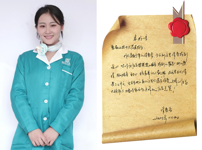梁楚楚表示,對于本次的服務得到表揚有些意外,她只是將接待標準完整執行,已經成為一種職業習慣。