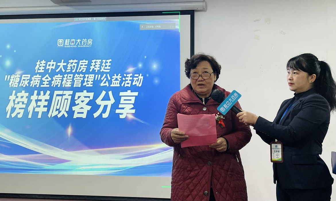 通過桂中大藥房糖尿病藥師們的專業服務,積累了眾多榜樣顧客,更有榜樣顧客上臺發表感言,表達了對桂中大藥房的信任以及桂中糖藥師工作的認可。
