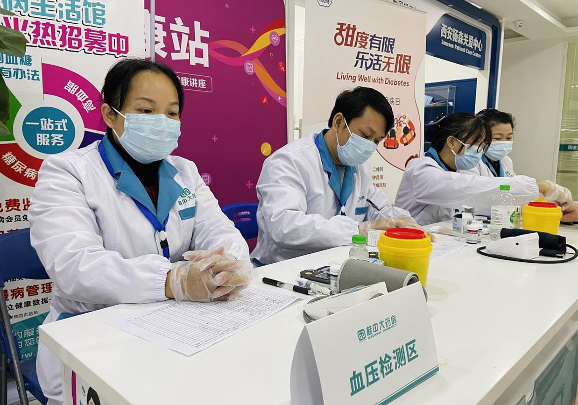 桂中大藥房還貼心的準備了血壓、血糖檢測區,為各位有需求的會員朋友進行免費的自測服務,并由專業的糖藥師給我們糖友們提供飲食和運動的建議和合理用藥指導。
