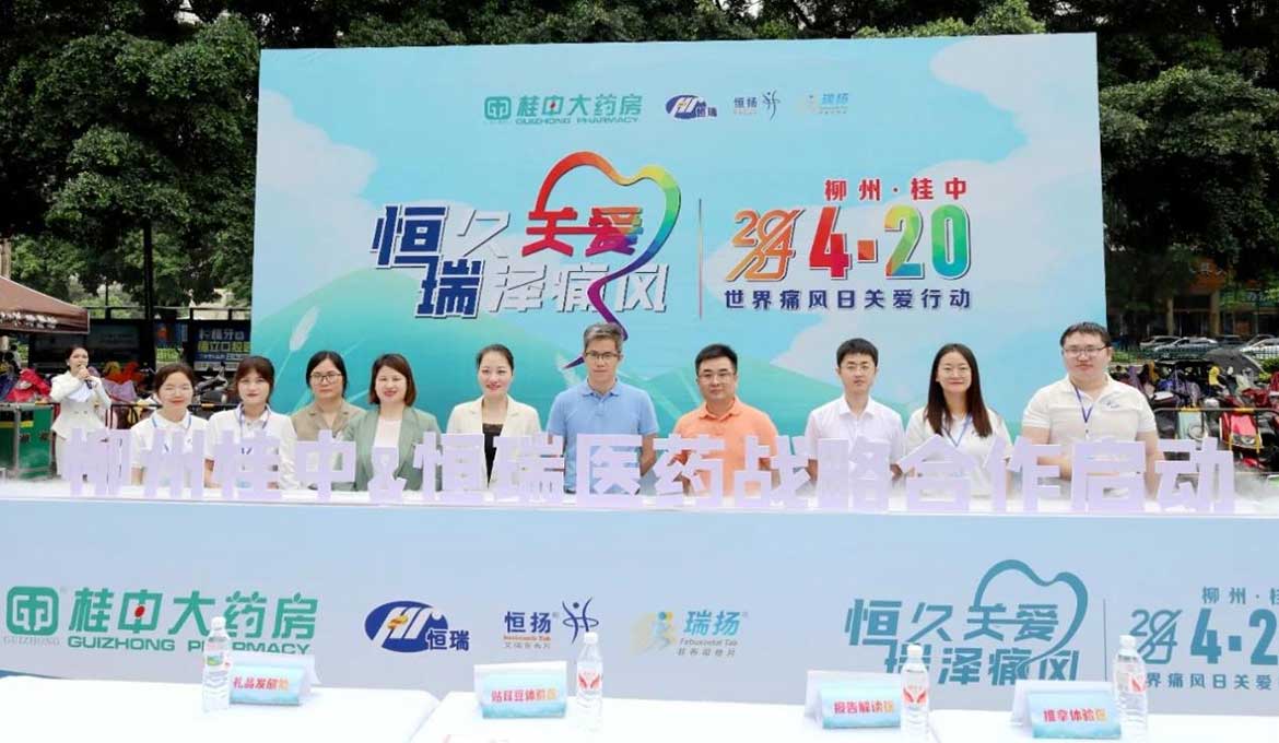 在4月20日世界痛風日當天,桂中大藥房攜手恒瑞醫藥在城中萬達廣場啟動高尿酸項目,并聯合舉辦了一場主題為“恒久關愛 瑞澤痛風”的大型公益路演活動。該活動旨在提升公眾對高尿酸血癥及其引發的痛風疾病的認識,并推廣科學的預防和治療方法。