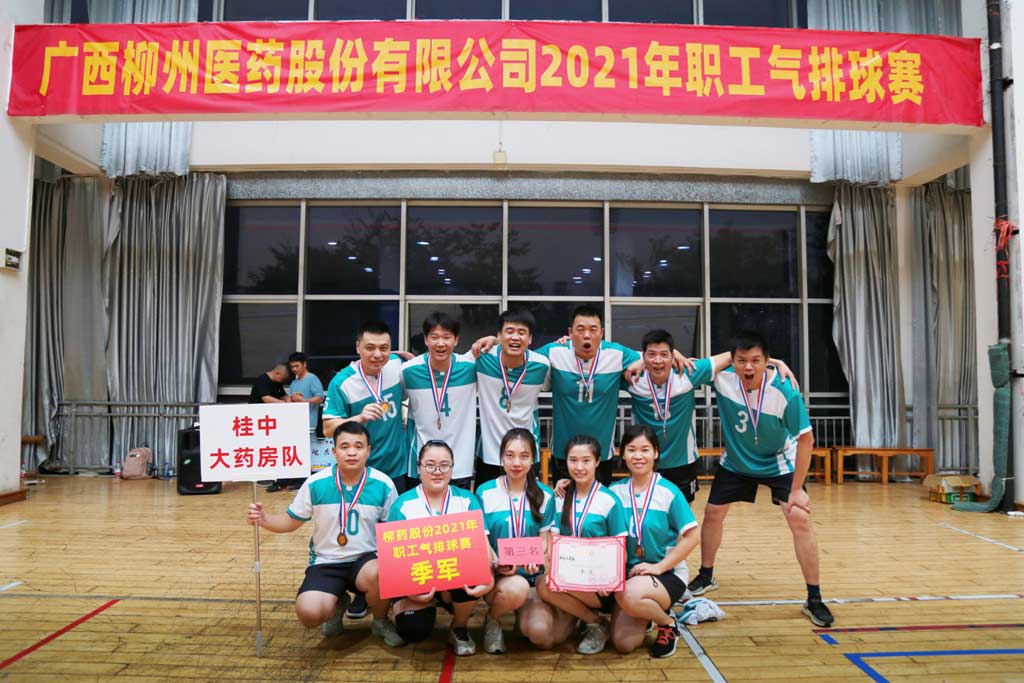 11月6日,2021年柳藥股份職工氣排球賽在柳州市籃球訓(xùn)練基地如期舉行,本次比賽共有18支隊(duì)伍參賽,桂中大藥房由常務(wù)副總經(jīng)理歐福海帶隊(duì)參賽。最終桂中大藥房以小組全勝,小組第一的好成績(jī)挺進(jìn)淘汰賽。第一輪淘汰賽仍然保持戰(zhàn)績(jī),可惜過(guò)早在1/4決賽時(shí)遭遇上屆決賽對(duì)手供應(yīng)鏈物流1隊(duì),未能進(jìn)入決賽。隊(duì)員們始終發(fā)揚(yáng)不氣餒,不放棄的體育精神,保持拼搏斗志,打好3/4名比賽,最終獲得了第三名好成績(jī)。